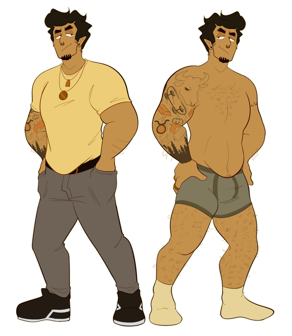 As a former punk who now works at a high-end bar as a bouncer, Khalid's tall and buff stature can come off as quite intimidating. His quiet and stubborn personality leaves his patience very thin, but it comes in handy for the customers brave enough to argue with him. Never one to back down from a fight, Khalid loves anything to do with wrestling and working out, and his friends are not immune to this. His love language comes in the form of throwing you to the ground and cooking you food afterwards. Once you get under that tough exterior, you’ll see he's really just a big himbo who likes to relax with his cat, Cougar.
